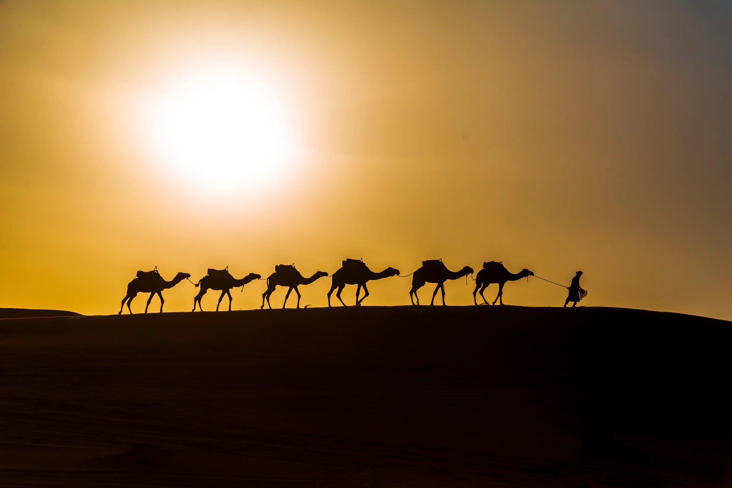 Today, your journey continues toward the Sahara Desert. You will stop at the Todra Gorges, where tall rock walls rise more than 300 meters high. It’s a beautiful place for short walks and photos. Pass through Tinghir and Erfoud, a small town known for fossils and local markets, before arriving in Merzouga in the afternoon. This desert town lies at the edge of the golden dunes of Erg Chebbi.